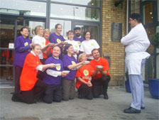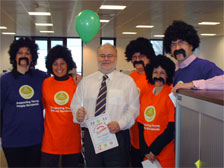 Legal Team colleagues from Maple Court donned wigs, Foundation t-shirts and flowers to entertain with special birthday ‘Sing-a-Grams’ at £10 a go! Michaela Bishop, Dianne Perrin, Jillian Negrini, Hue Smith, Brian Wilson, John Nelson and Chris Heath sang to and embarrassed their unsuspecting victims!