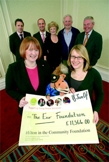 Hilton in the Community Foundation awarded The Ear Foundation £11,564 for the purchase of audiovisual equipment for the charity’s Education and Resource Centre. The Ear Foundation is a support and information network for young people who are at varying stages of deafness and who have cochlear implants. The audiovisual equipment will allow the charity to upgrade their old equipment and allow for better recognition and realisation of each young person’s specific disability. Moira Banks and colleagues from Hilton Nottingham joined Christopher Biggins and Basil Brush at a special handover ceremony. |