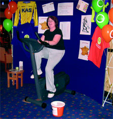 Mon Dieu! Those energetic colleagues at Hilton Portsmouth held a ‘Tour de France’ event in the hotel lobby, raising £365 for the Foundation in just one day. Above, Lesley Bowen from the Front Office team free-wheeling! |
