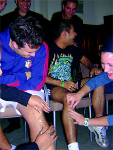 Two brave men at the trafalgar participated in a leg waxing competition for the Foundation. Believing 'pain is gain' Tom Howard and Bhavik (Steve) Thakkar raised £120! They created a fun and entertaining event, where colleagues enjoyed placing bids for wax strips and then having the pleasure of ripping the hair off their legs - Ouch!! We're not sure if it's all grown back yet… |